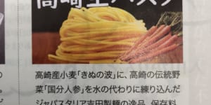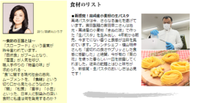 第19回日本農業新聞の一村逸品大賞に応募し、みごと大賞を頂きました♪ 詳細はこちら→https://www.agrinews.co.jp/news/index/142554 JAたかさき様に感謝!大賞に選んで頂いた審査員さまにも感謝!! 高崎生パスタはインターネットからもご購入頂けます。→ https://japastalia.thebase.in/ ※2023年3月11日 日本農業新聞 一面より 【続報】様々なメディアに掲載して頂きました! 2023年3月28日 朝日新聞 2023年4月1日 上毛新聞 2023年4月 高崎市議会の「新風会報」 2023年5月22日 JAたかさき本店にて、日本農業新聞さんから記念品の授与 やくみつるさんの直筆イラスト!ありがとうございます♪ 2023年5月28日 毎日新聞 朝刊